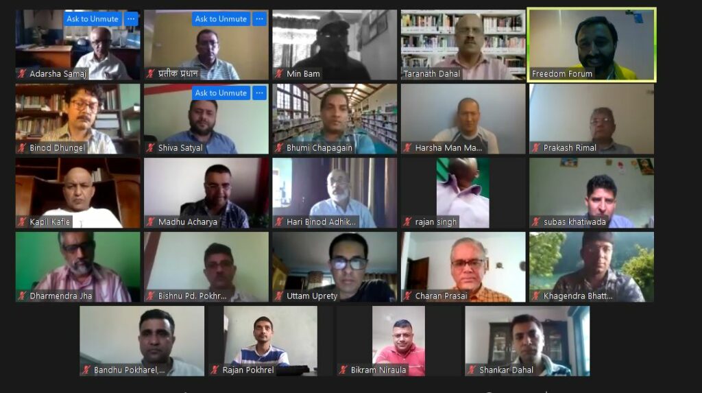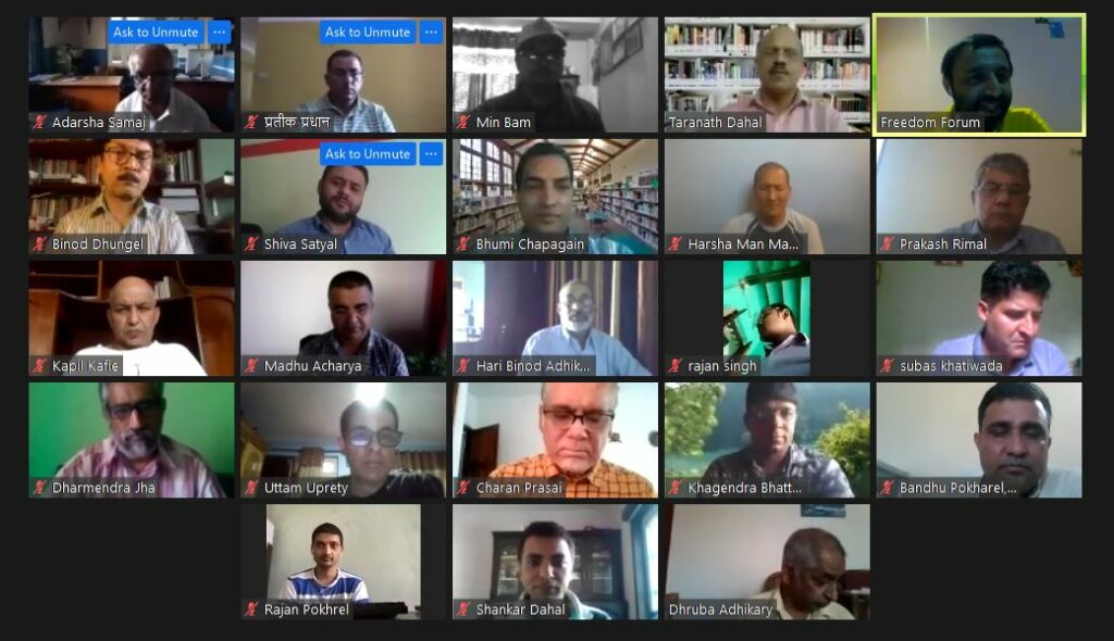 Lately, Covid-19 crisis pushed further the legacy media to adopt technological sphere, the digital sphere, for their visibility and sustainability. In this context, Freedom Forum organized a dialogue on “Digitalization of Media and Civic Space in Nepal” on October 16. The main objective of this event was to discuss the shift of the traditional media to digital media and its impact on the future media landscape, public opinion, civic space and fundamental freedoms. The participants ranged from media professionals, CSOs working for media and information, academia and the researchers.