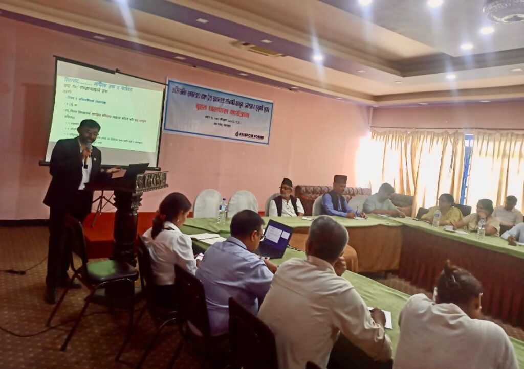Lastly, concluding the session, FF Chairperson Hari Binod Adhikari said respecting one another’s freedoms while exercising own rights help foster better atmosphere for exercising rights and freedoms. “FF is always committed to the cause of democracy and the protection of civic freedoms. We are ready to cooperate with Information Ministry to generate knowledge and advocate for reform in FoE and media laws and policies,” he reminded.